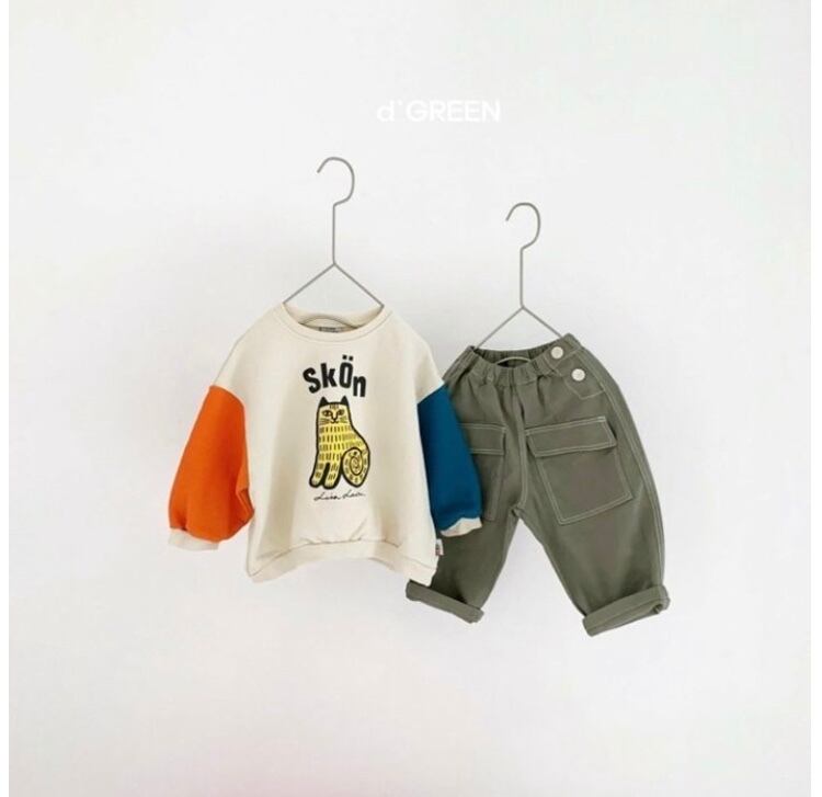 ステッチと前の大きなポケットがアクセントになったゆるっと太めなシルエットのパンツです☺︎