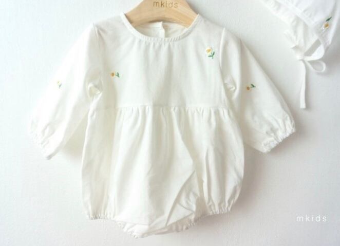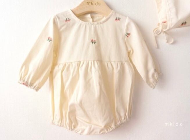 flower 刺繍ロンパース&ボンネット