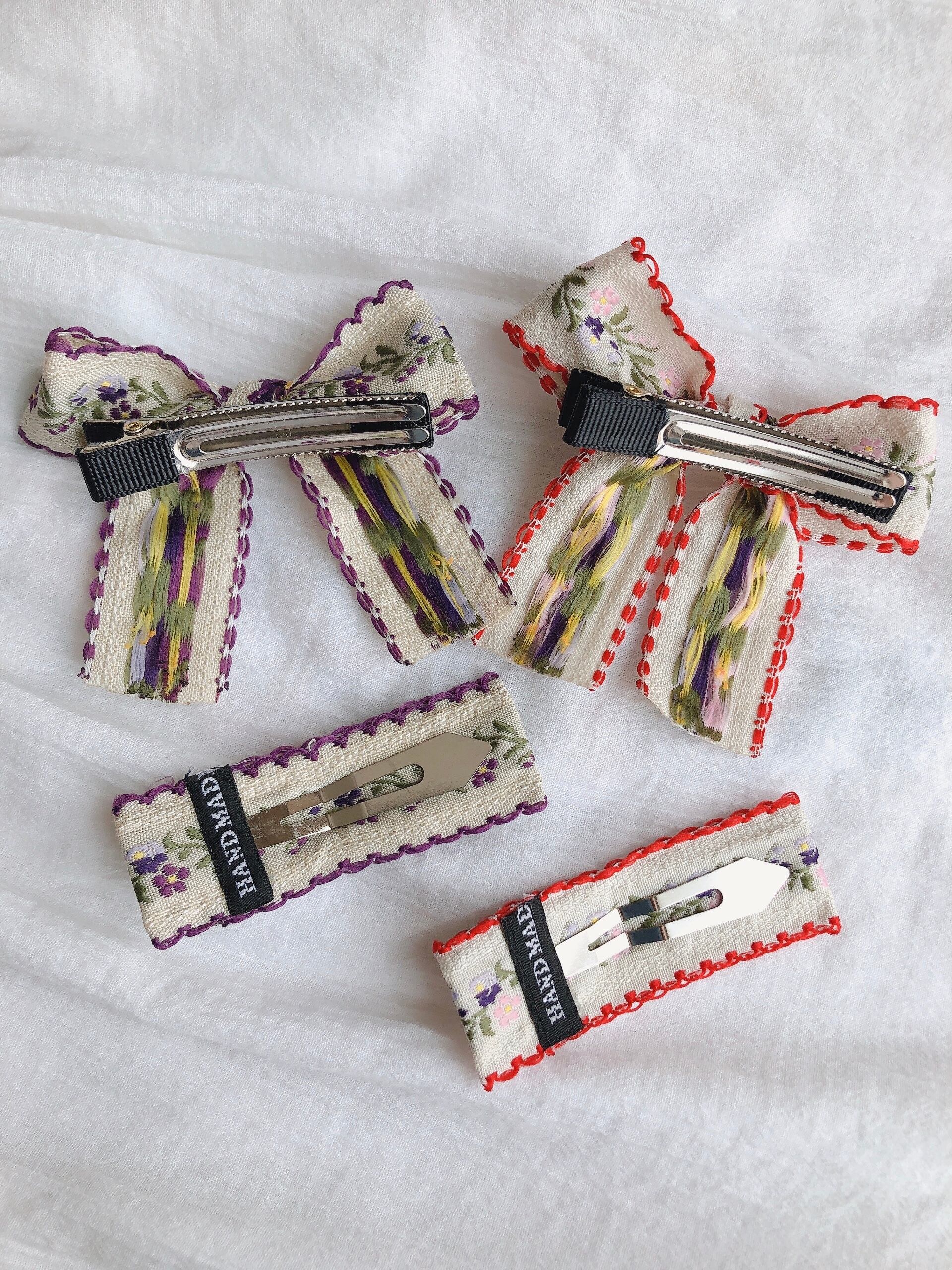 形の違う2つのピンがセットになったとってもかわいい刺繍ヘアピン♡